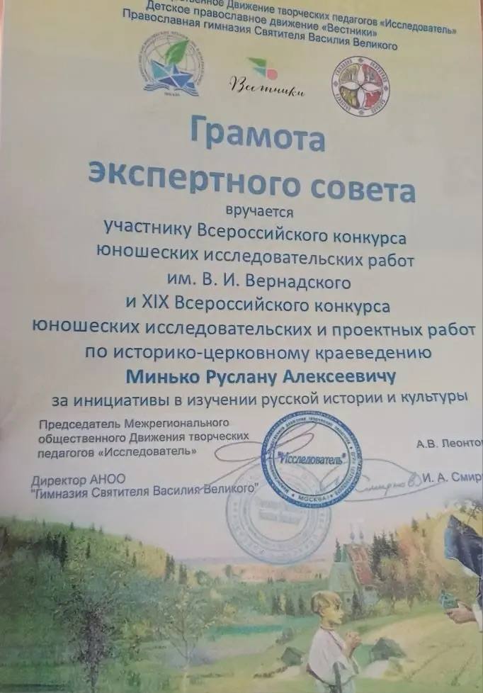 18–19 апреля 2026 года на базе Гимназии Святителя Василия Великого в Одинцово Московской области состоялся очный этап Всероссийского конкурса юношеских исследовательских работ им. В.И. Вернадского и ХIХ Всероссийского конкурса по историко-церковному краеведению (входит в перечень Всероссийских олимпиад на 2025-2026 учебный год, утвержденных Приказом Министерством просвещения Российской Федерации).
