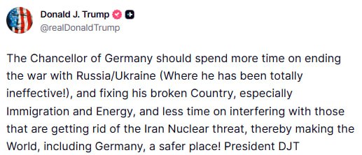 Трамп жестко накинулся на Мерца из-за Ирана и призвал сконцентрироваться на завершении войны на Украине.