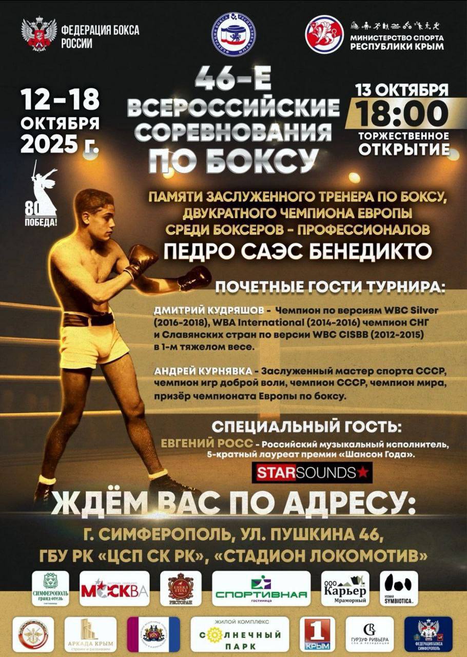 С 12 по 18 октября в г.Симферополь прошли 46-е Всероссийские соревнования по боксу «Памяти Заслуженного тренера по боксу, двукратного чемпиона Европы среди боксёров-профессионалов Педро Саэс Бенедикто».