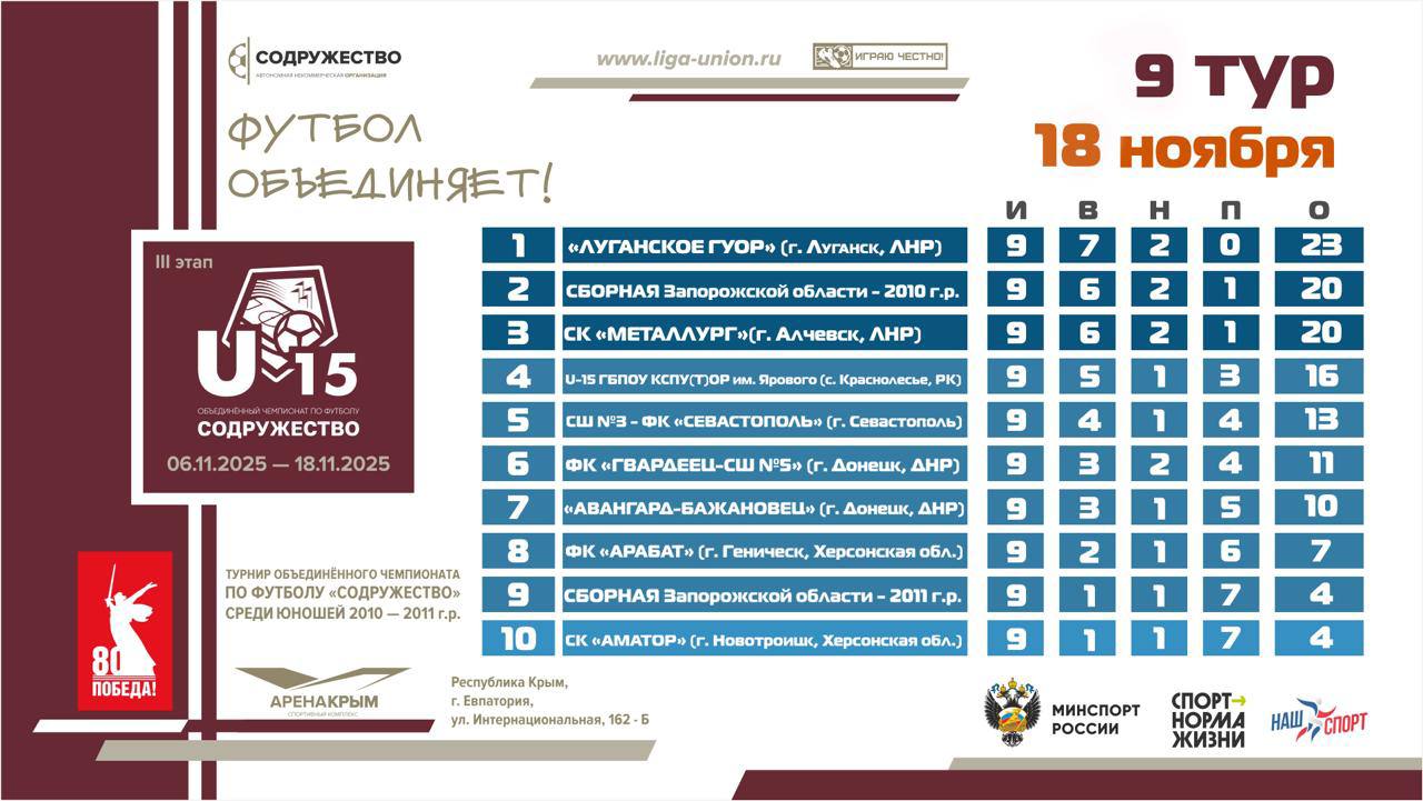 С 6 по 18 ноября в Евпатории состоялся третий этап Объединённого чемпионата по футболу «Содружество» среди юношей U-15 (2010-2011 г.р.). Сборная Запорожской области показала отличный результат, заняв 2-е место в турнирной таблице!