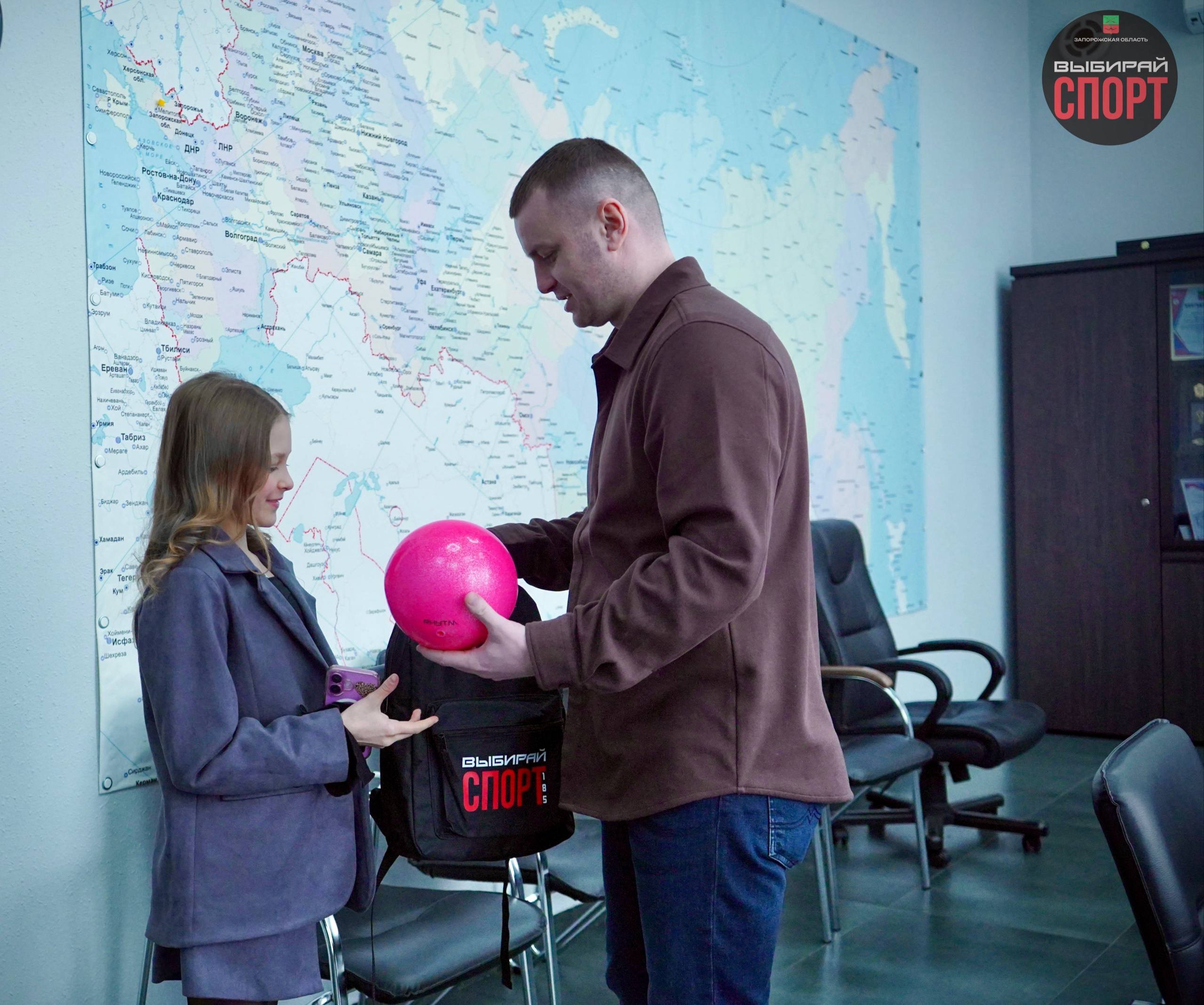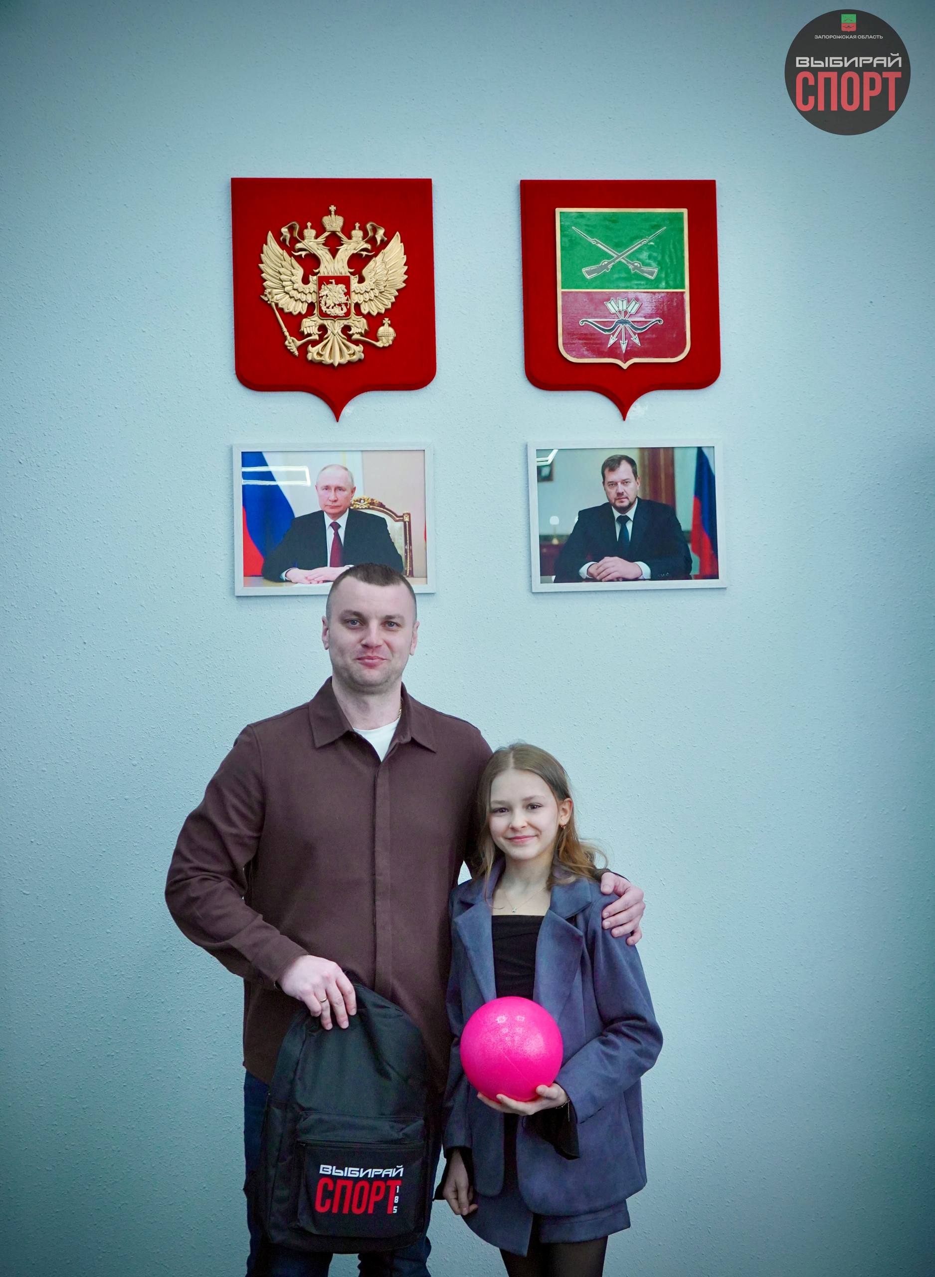 Сегодня и.о. Министра спорта и туризма Запорожской области Константин Сергеевич Зайцев вручил 11-летней Полине долгожданный подарок — новый мяч для художественной гимнастики!