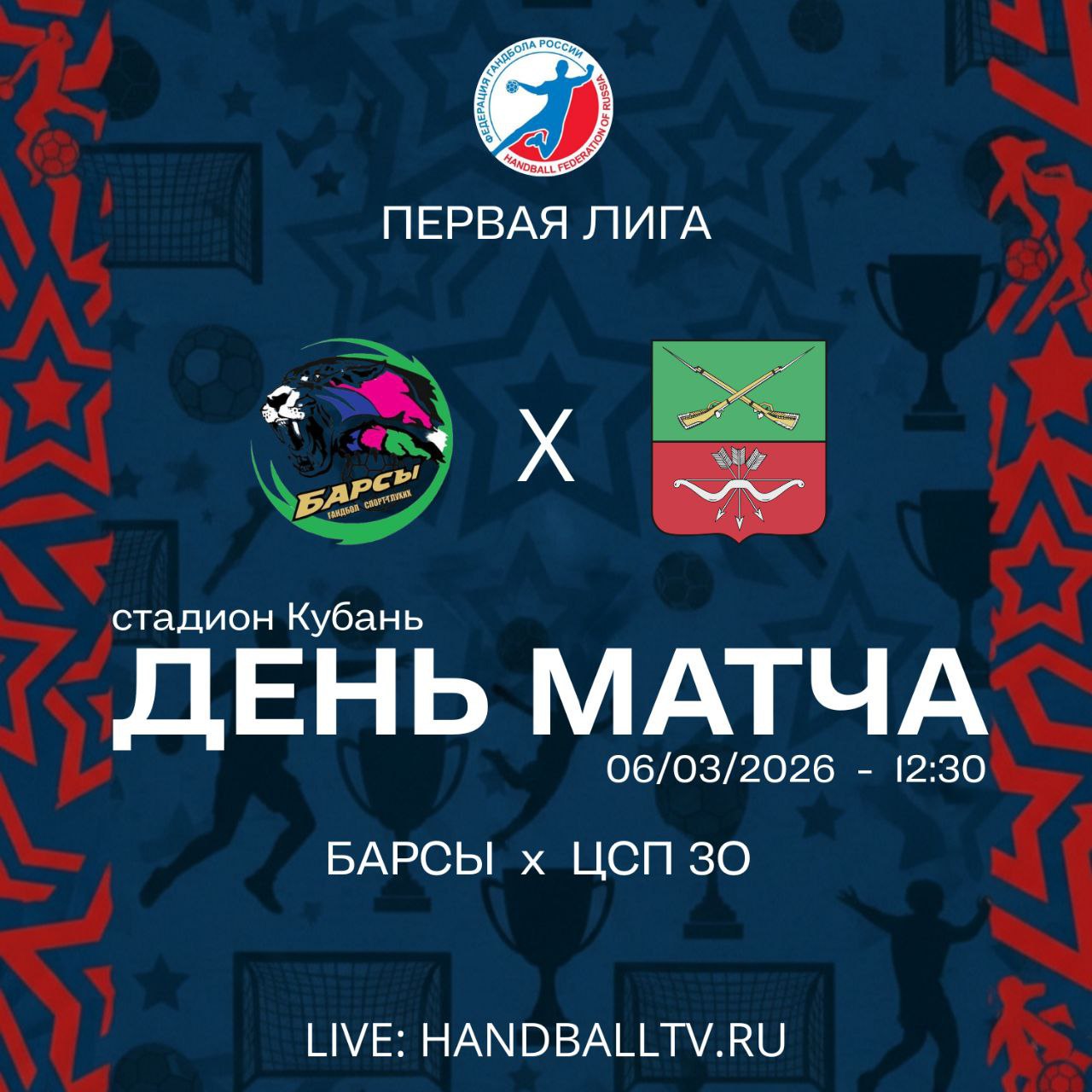 Сегодня, 6 марта, в 12:30 состоится матч между сборной командой Запорожской области по гандболу «ЦСП ЗО» с командой «Барсы» в рамках Чемпионата России по гандболу - Первая лига 2025/26 в г.Краснодар.